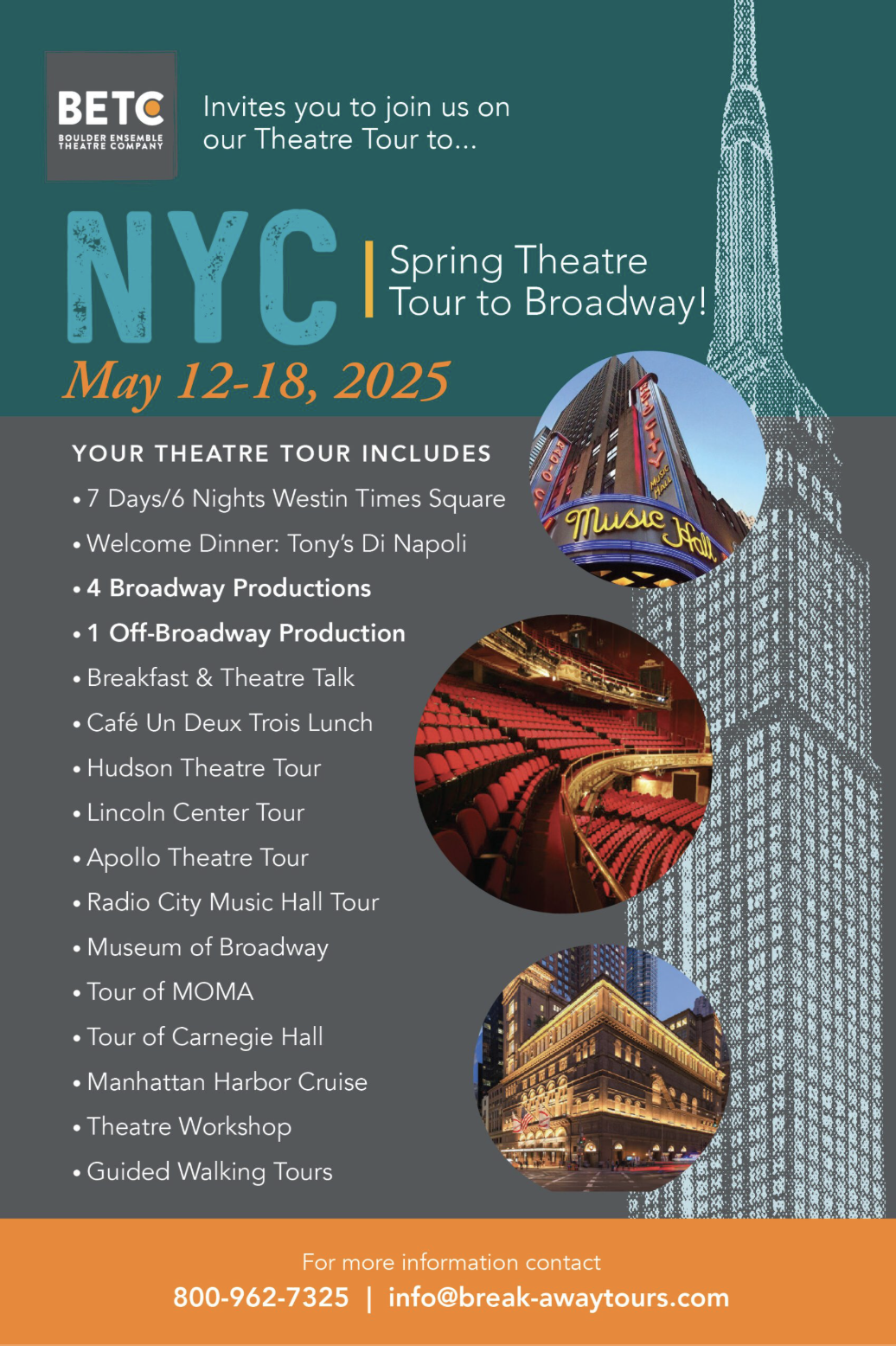 For more information, contact info@break-awaytours.com or call 800.962.7325.